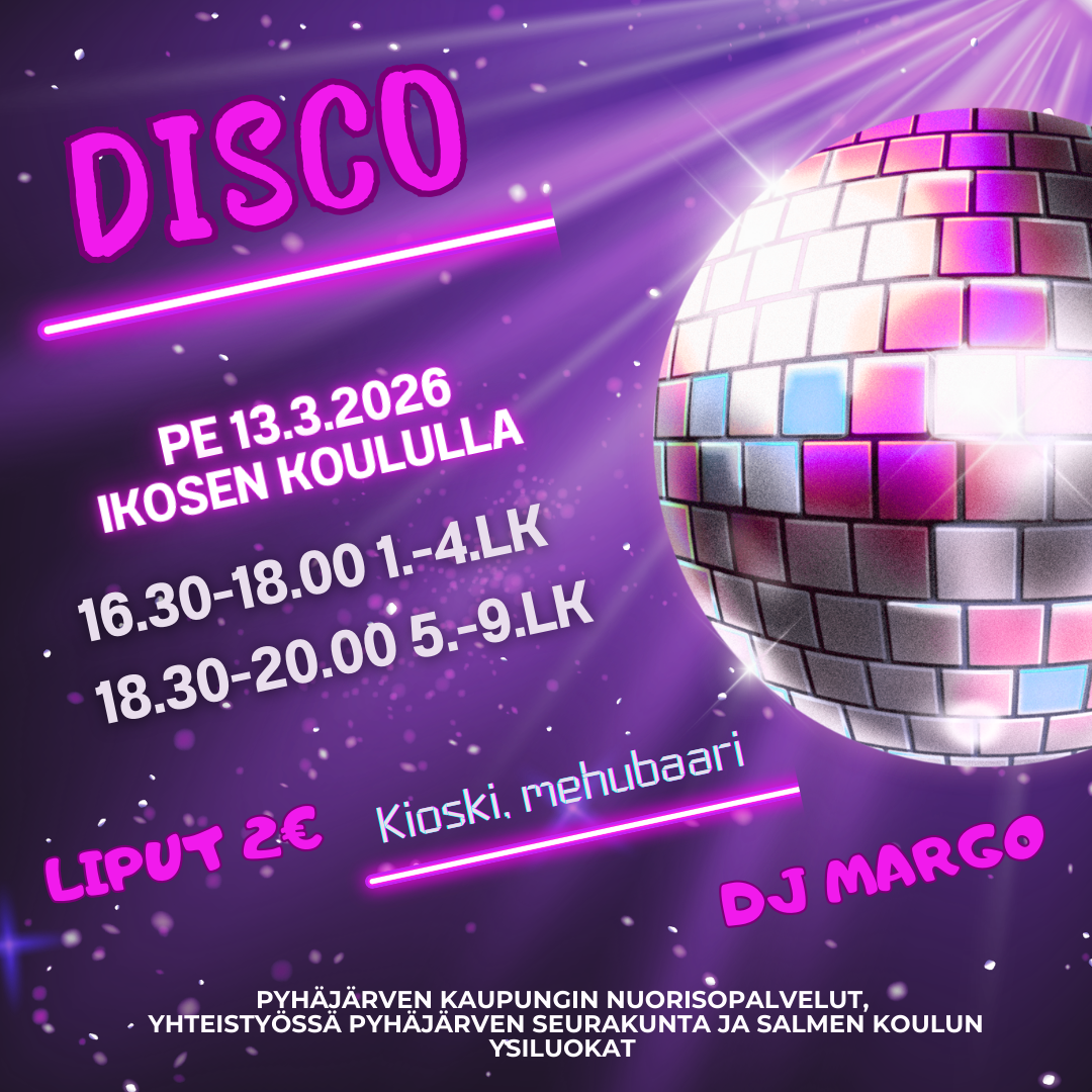 Perjantaina 13.3.2026 Ikosen koululla tanssitaan! 🕺💃🕓 16.30–18.00 1.–4.lk🕡 18.…
