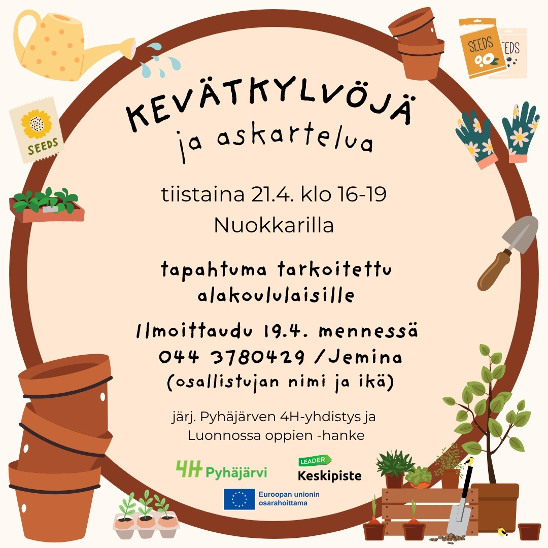 Ilmoittaudu 13.4. mennessä Maritalle, puh. 044- 445 7651