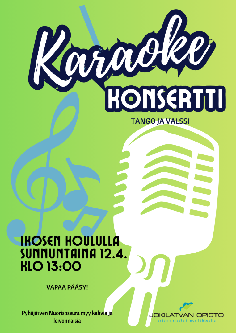 Jokilatvan opiston karaokeryhmän kevätkonsertti. Teemana tango ja valssi. Vapaa...